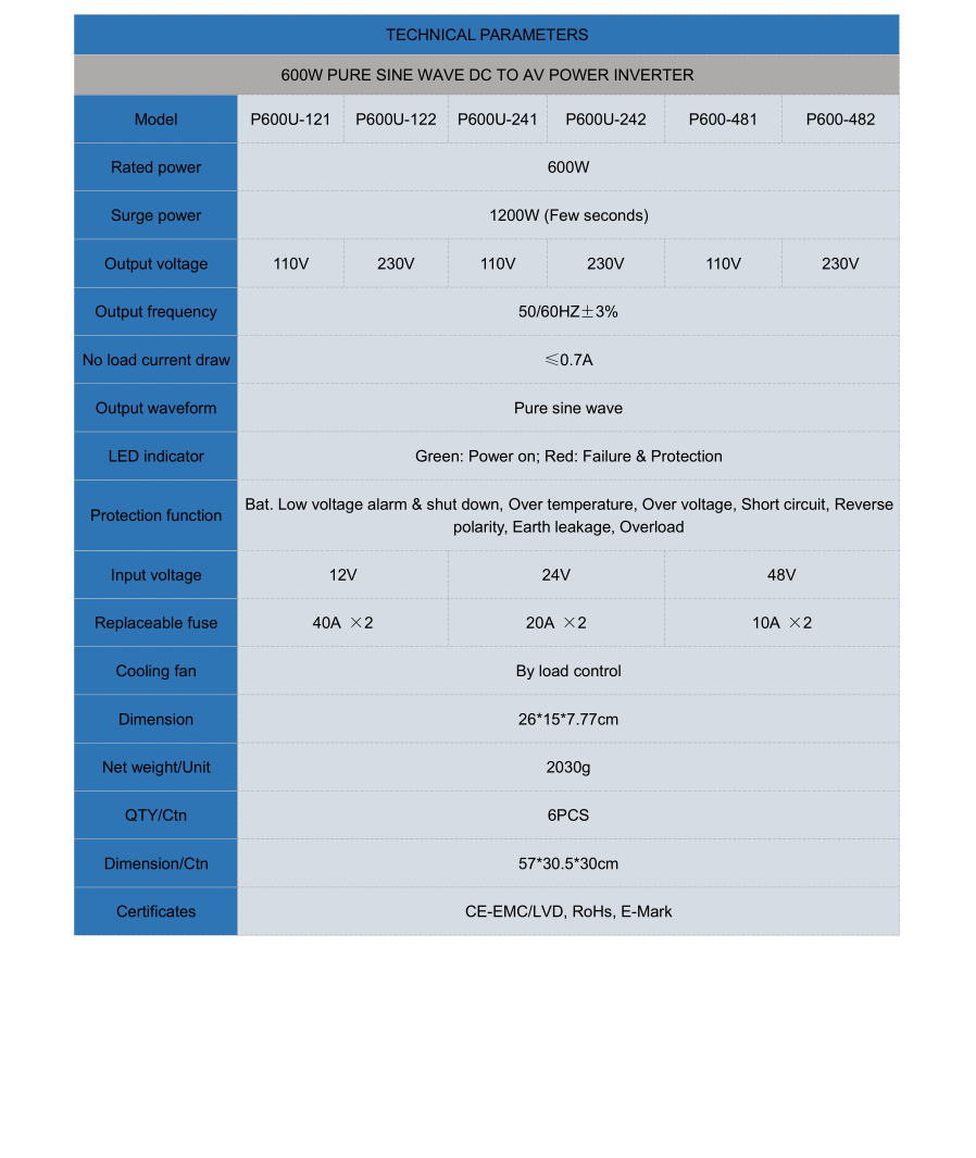 600 Вт таза синус толқыны айнымалы ток инверторы